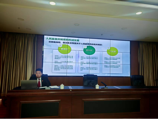 兴安盟检察分院第四检察部副主任周继先以提升监督能力服务法治建设为主题,围绕人民监督员的职责与使命、人民监督员的监督范围等重点知识进行了专题授课。