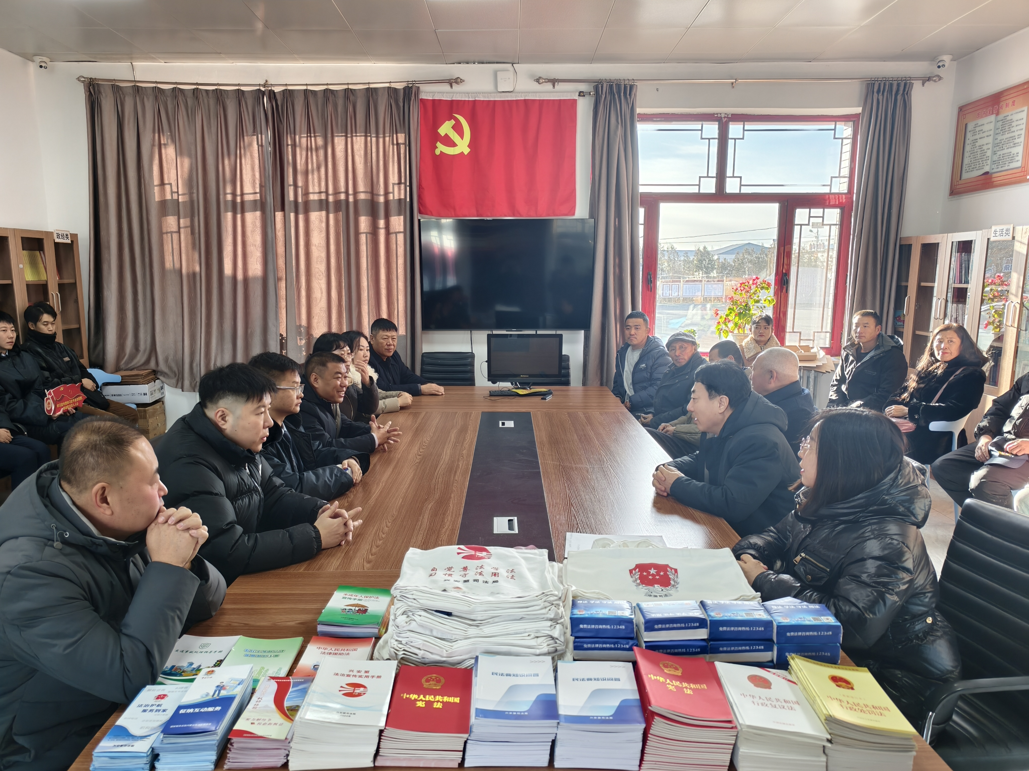 座谈会现场,司法局工作人员为乡村干部、村民代表讲解宪法核心要义、法治宣传教育法及农牧民常用法律知识,从根本法到日常实用法律,全方位搭建起直观易懂的法治知识体系。将《宪法》《民法典知识问答宣传手册》《行政复议法》《反有组织犯罪法》等法律知识读本与印有兴安盟公共法律服务平台二维码的纸抽、手提袋等普法宣传品送到群众手中,让法律知识随时随地可学可查。