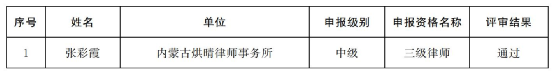 经2025年度兴安盟律师系列中级专业技术职称评审委员会评审,共1人通过,现予公示,公示期为2025年12月17日至2025年12月24日止。公示期间,如对取得资格人员有何疑问或问题,可通过来电、来函、来访等方式向我局反映。反馈情况要真实有据,同时附书面材料并署真实姓名、联系电话,以便于我们核实、调查并及时反馈情况。