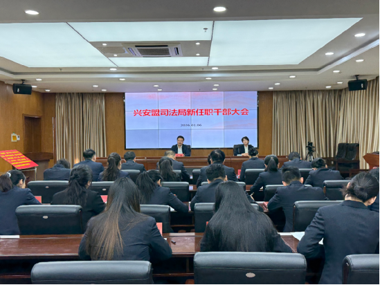 1月6日,兴安盟司法局举办新任职干部大会暨宪法宣誓仪式。盟司法局党组书记、局长刘刚进行监誓并讲话,党组成员、政治警务处主任梁长艳主持会议,全体新任职干部参加会议。